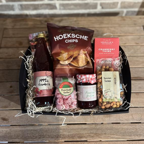 Een heerlijks sapje met een wafeltje is het dagelijks ritueel van onze Saar. De nootjes en de chips bewaart ze het liefst voor 's avonds. Een prachtig geschenk voor een bedankje of een verjaardag!