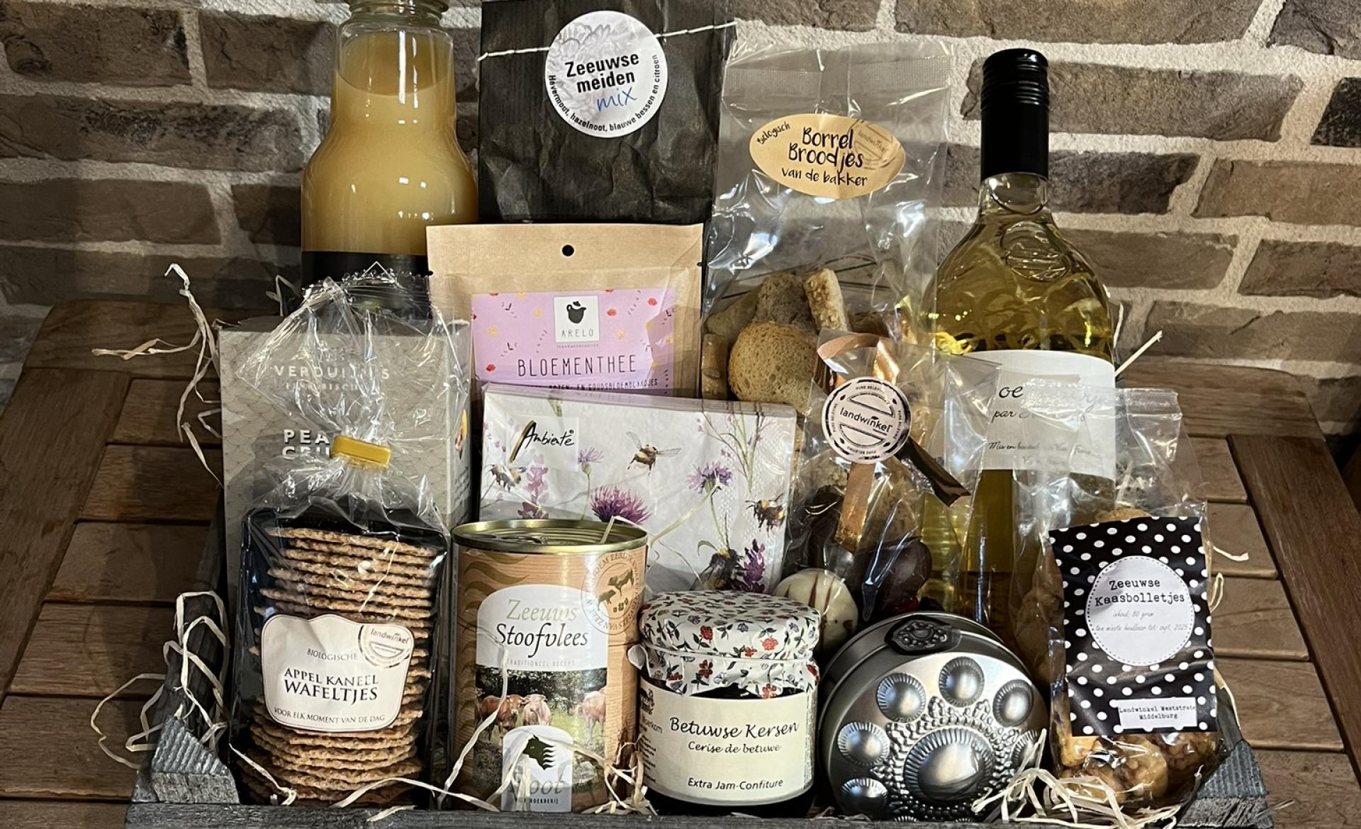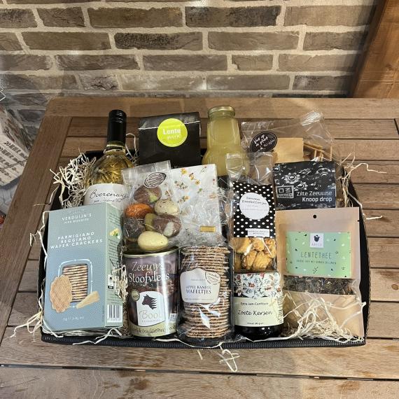 Pakket Anna is een mooi cadeau met een fleurig tintje! Boordevol smakelijke producten.